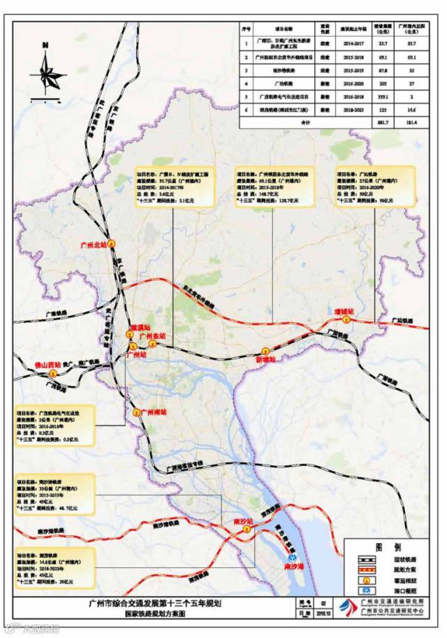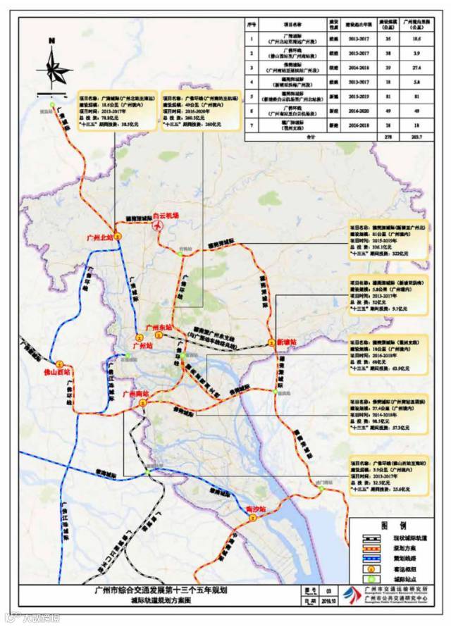 ▶“十三五”目标:完成广清城际(广州北站至清远广州段)、广佛环线(佛山西站至广州南站广州段)、佛莞城际(广州南站至望洪站广州段)、穗莞深城际(新塘至洪梅广州段)、穗莞深城际(新塘经白云机场至广州北站段)、广佛环线(广州南至白云机场段)以及穗莞深城际琶洲支线7大项目。