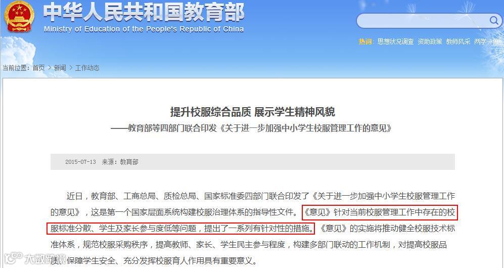 《关于进一步加强中小学生校服管理工作的意见》出台