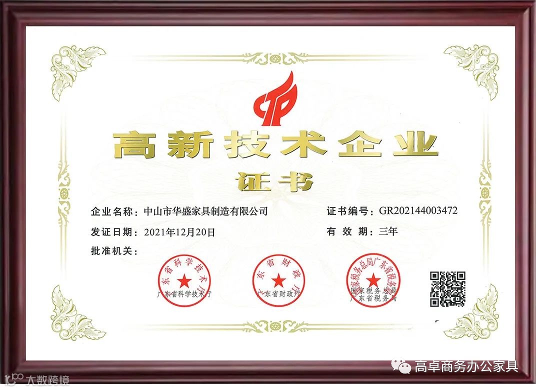 再次荣获“高新技术企业”认定,不仅是权威认证部门及广大用户对华盛家具集团科技创新能力和综合实力的肯定与嘉奖,更是华盛家具品牌发展过程中的一个里程碑。未来,华盛家具集团将坚守品质初心,进一步加快科技创新的步伐、夯实高新技术人才队伍、优化企业原创研发体系,不断升级商用空间一站式服务能力,为推动办公家具行业在专业化、品牌化、智能化的道路上高质量发展贡献力量。