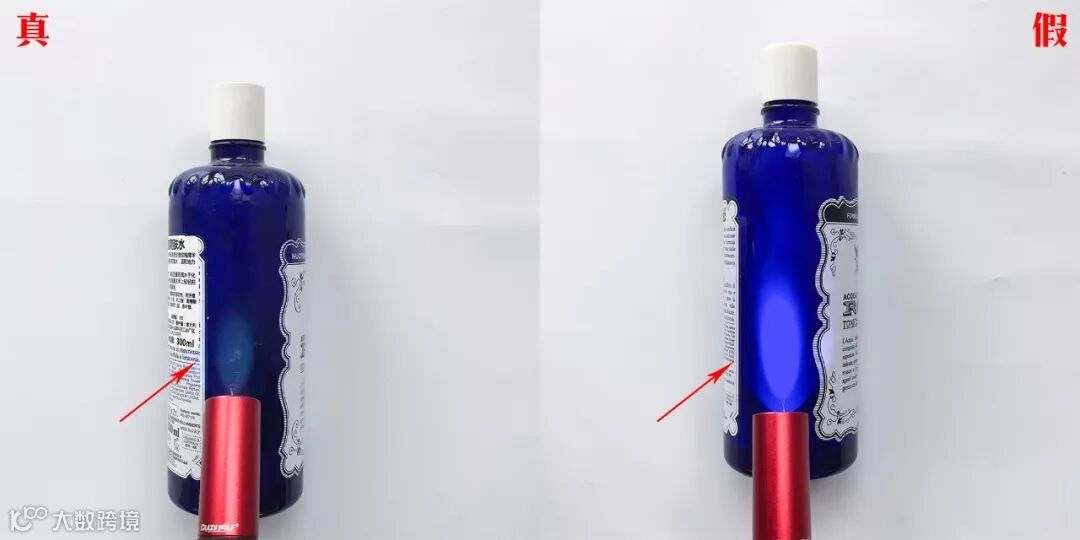 正品瓶身没有荧光反应,假货有荧光反应