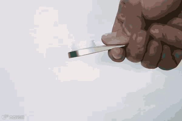 步骤五:拇指与食指分别握于酒滴正反面防滑纹理处,使用撬起端,沿铝环插入缝隙中,撬出透明塑料内塞,即完成取盖。