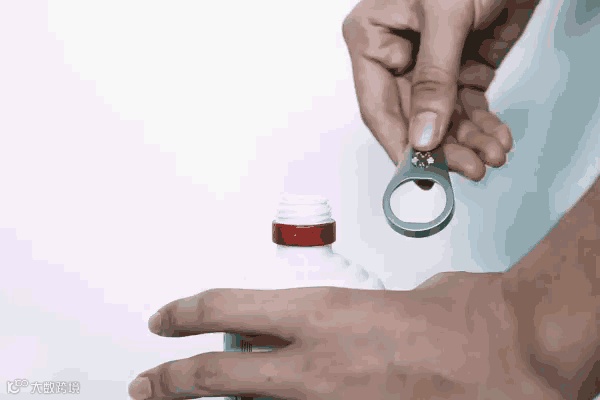 小窍门:撬起白色瓶嘴时,对手部力量有一定的要求,建议通过装配钥匙环,以及钥匙,增加握柄长度,以方便发力。