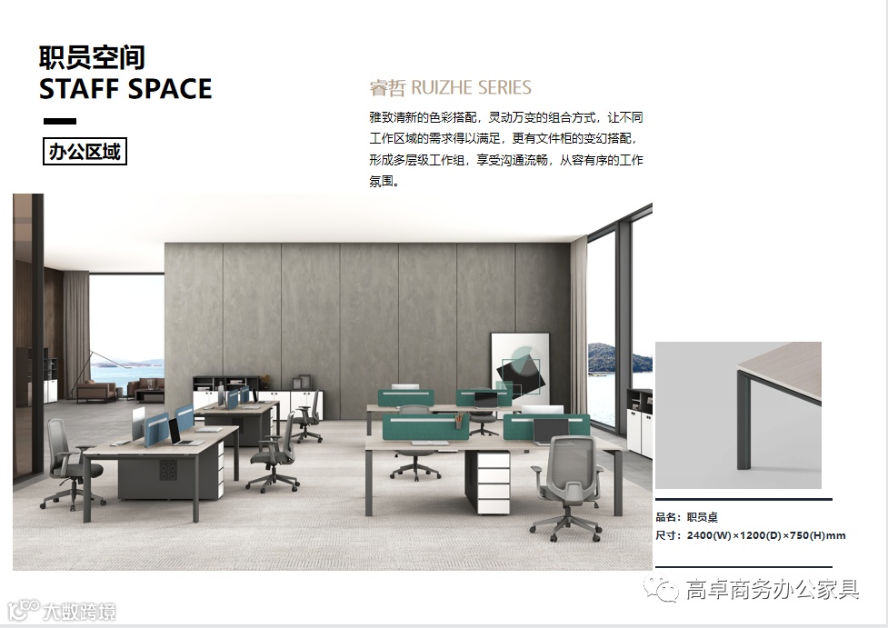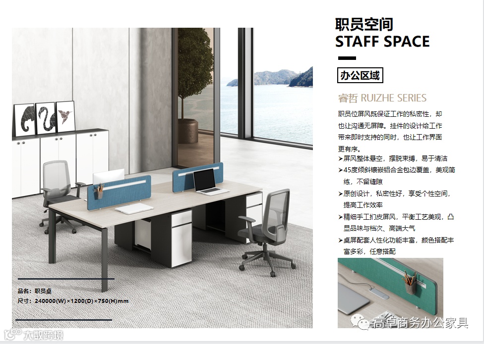 导读:睿哲系列整体办公解决方案,处处凝结着简约而不简单的设计哲思,明朗简洁的色彩搭配,独一无二的线条流性,利落沉稳的外观造型,力争从每个角度凸显豁达从容的办公气度,创见全新工作价值。