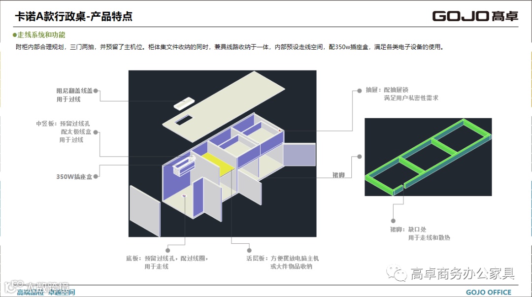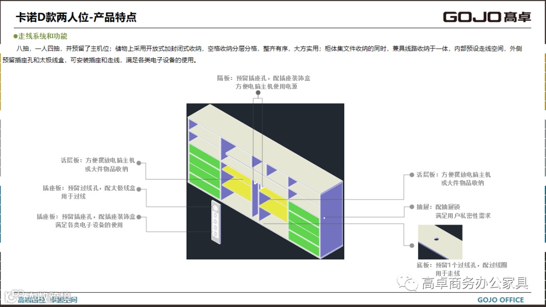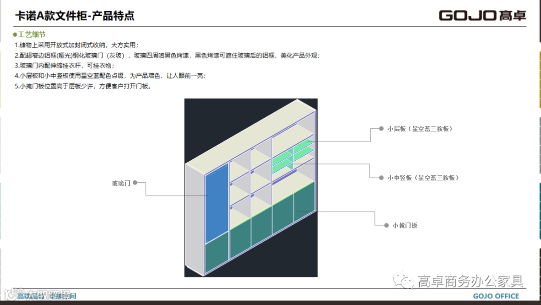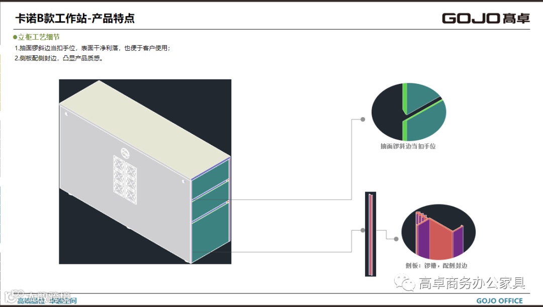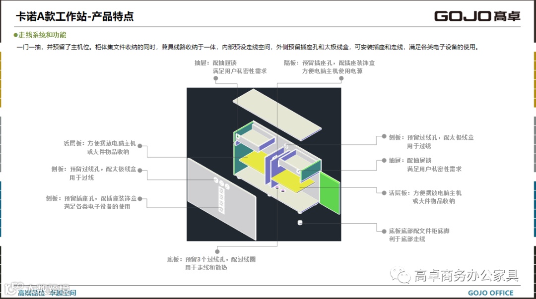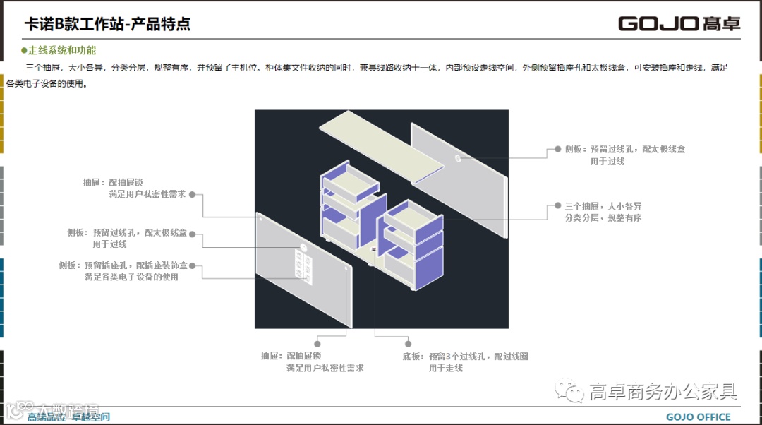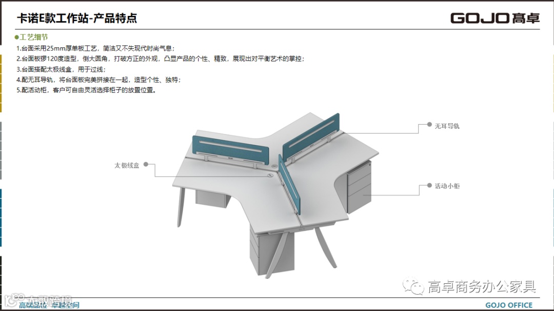 GOJO高卓品牌定位中高档次消费群体。设计主线以稳重现代类的商务风格为主,配合灵动时尚的色彩搭配为辅。设计高端现代商务办公空间、产品一站式供应的专业服务商