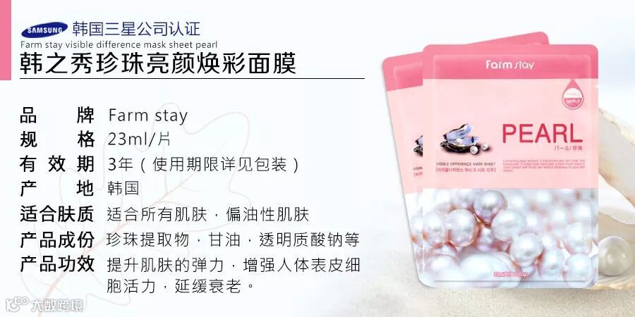 含有珍珠提取物,使发暗的肌肤亮白透明。环保质地面膜纸,紧紧贴合面部肌肤,使需要保湿的肌肤得到彻底的滋养护理