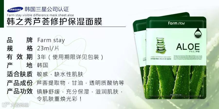 从自然中获取芦荟提取物,给干燥的肌肤赋予充足水分,使疲惫受损的肌肤被重新唤醒活力。环保质地面膜纸,紧紧贴合面部肌肤,使需要保湿的肌肤得到彻底的滋养护理