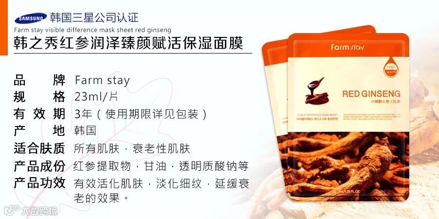 含有红参提取物,保护肌肤,润泽洁净,赋予生机。环保质地面膜纸,紧紧贴合面部肌肤,使需要保湿的肌肤得到彻底的滋养护理