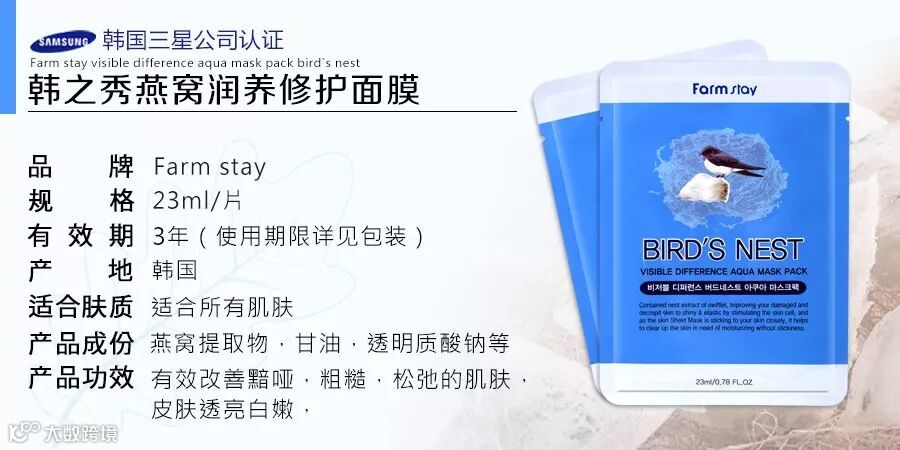 含有燕窝提取物,唤醒疲惫的肌肤,修护衰老的肌肤细胞,让您的肌肤重获光泽与弹力。环保质地面膜纸,紧紧贴合面部肌肤,使需要保湿的肌肤得到彻底的滋养护理