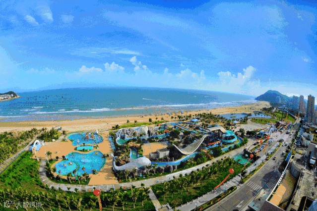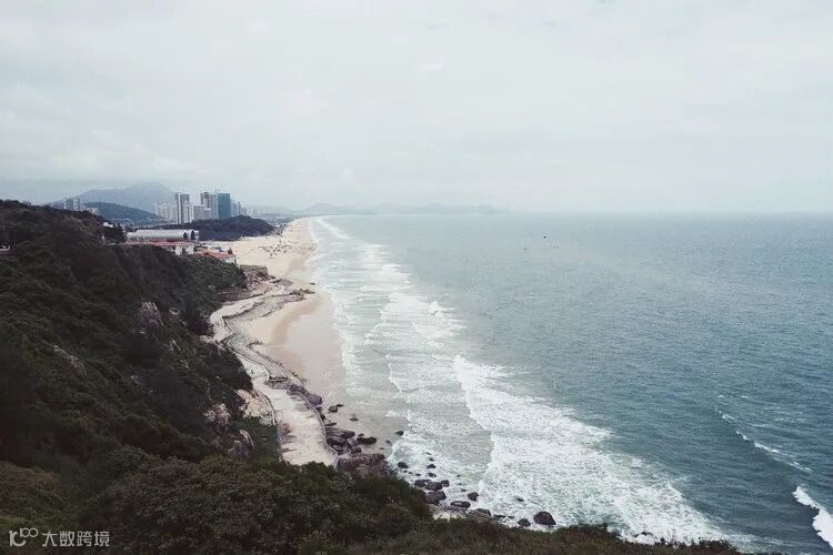 大角湾沙滩长2500米,宽100米,水质、噪声、空气质量均达国家一类标准。沙质金黄洁净,沙洋平均粒度0.35MM,为国际海水浴场最佳粒值,是广东省唯一国际级标准的海滨浴场。以阳光明媚灿烂、沙滩洁白松软、海水清澈纯净、空气清新多样而享誉中外。