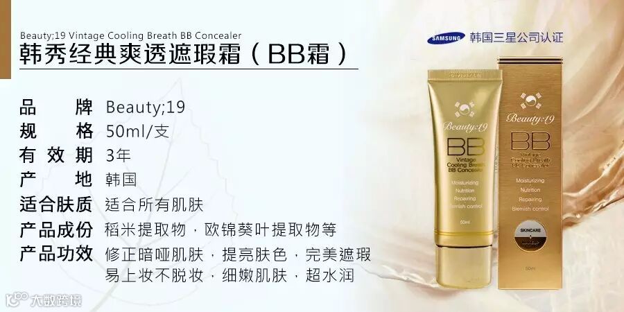 产品以温和无刺激的植物原料配方,无任何违禁成分添加,使用安全感突出,以其修正暗哑肌肤,提亮肤色,完美遮瑕,易上妆不脱妆,细嫩肌肤,超水润,极具清爽透气感让消费者深深迷恋。这是一款超好的空气感轻妆。