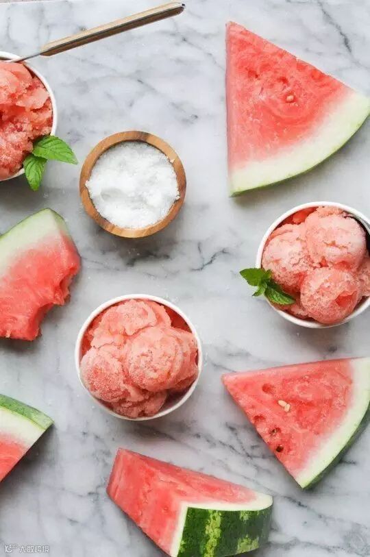 又爱吃冰激凌又爱吃西瓜的人有口福了,将西瓜搅拌成泥,用勺子挖成圆球状,放入冰箱里凝结成固体,即可使用。