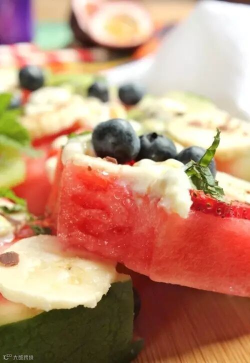 再来一个水果大联欢,把西瓜和爱吃的水果全部串在一起,尽情享用。