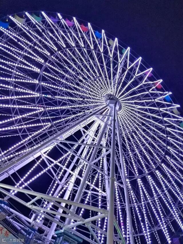这座摩天轮采用放射辐条式,结构精细,造型大气,是华北唯一配备百种变化、多彩绚丽夜间灯光秀的摩天轮。