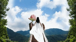 着一袭长裙,立于佛的掌心