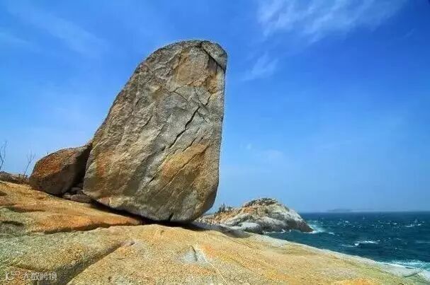 放鸡岛头部长年受风浪冲刷,岩石耸立,千奇百态,气势雄奇,远处,水天一色,烟波浩淼,近处,全是巨大险峻的礁石,惊涛拍岸。