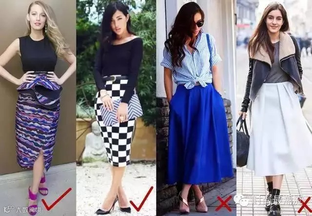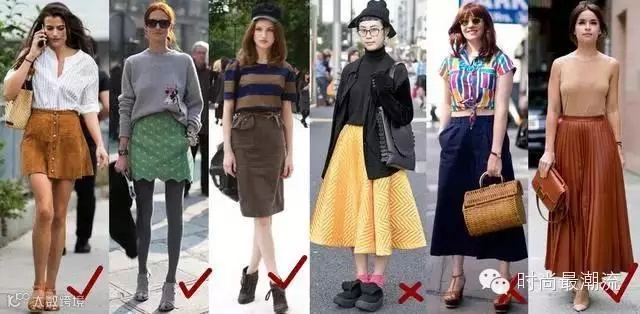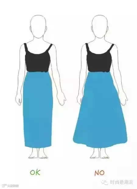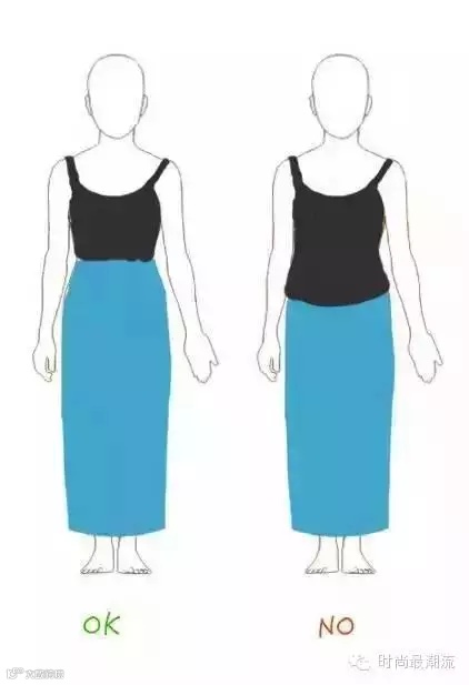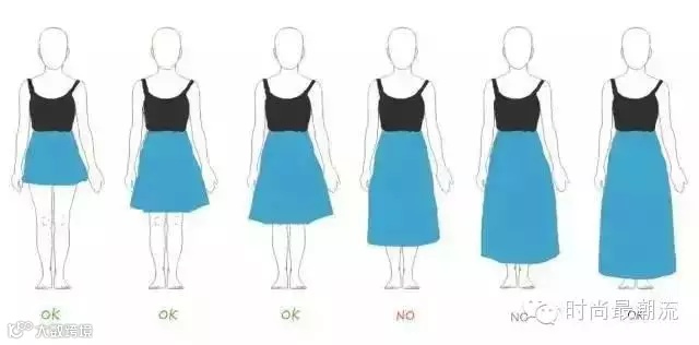 可以很明显的看出,裙子越短,重心在上,裙子越长,重心在下,一定记着,要么很短,要么很长!