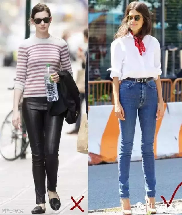 1、高腰:上身短下身长,这样能够显得身体比例好,进而有效显高。