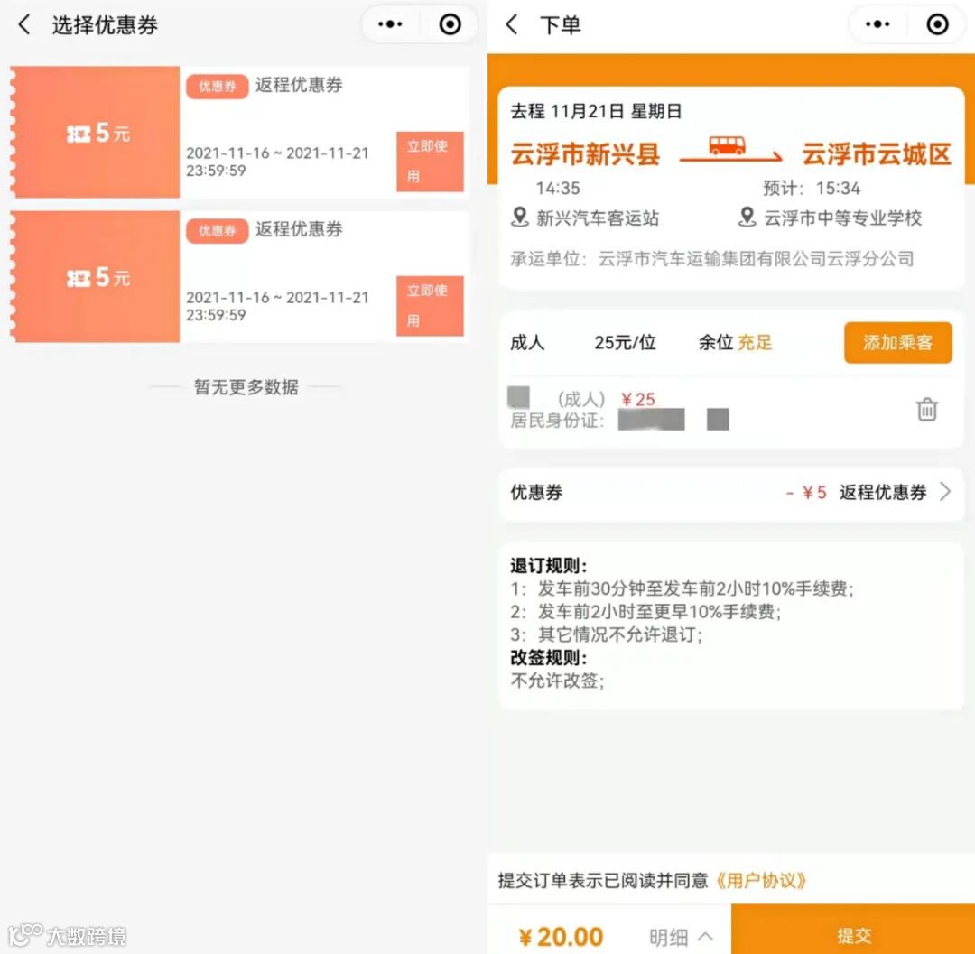 购买了周五的车票后,系统即发送一张5元优惠券,购买周日返程车票立即扣减!