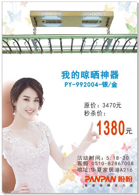 在华厦家居港&苏宁易购,盼盼晾衣架已为消费者提供了由专业设计师以功能性、耐久性、时尚性、实用性为基础,结合现代多数户型结构设计特点,精心打造的盼盼智能晾衣机。