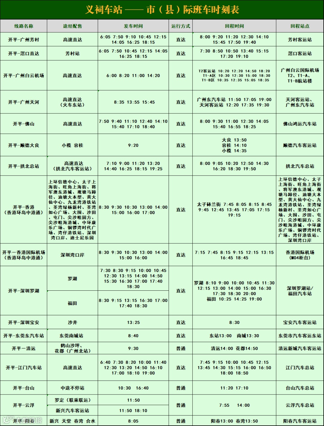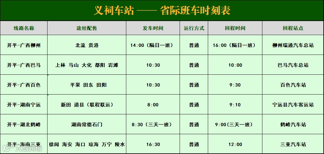 五一节假期将至,为满足广大旅客出行需求,公交集团即日起开售至5月10日的车票,旅客可通过“开平市公共交通集团有限公司”微信公众号或移步“义祠客运站”“水口客运站”售票窗口购票。我司将准备充足的运力、温馨的服务,安全便捷地为广大旅客提供出行服务。具体发班信息如下: