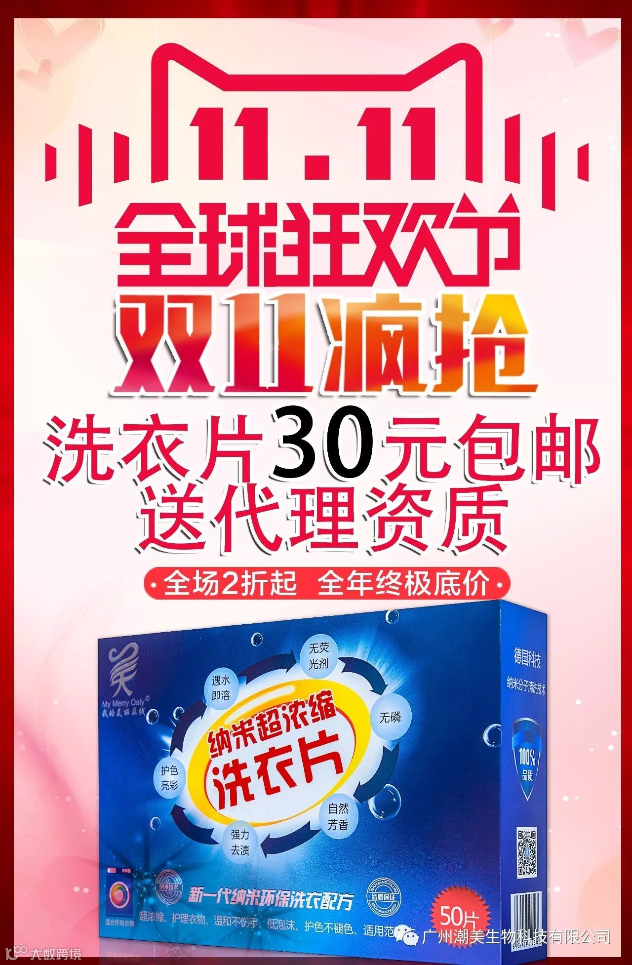2017年11日5日10时起,全场5折拿货授权,洗衣片30包邮授权,更有手 足膜9.9,低价风暴,席卷全城!