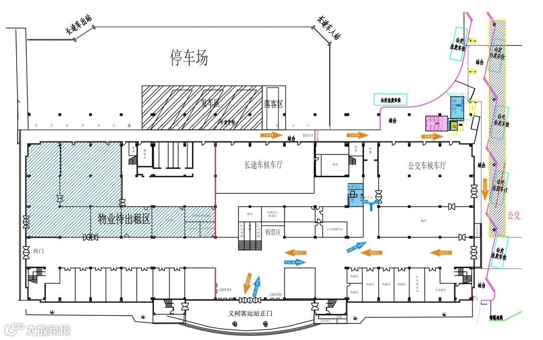 为进一步优化义祠客运站空间布局,根据经营发展需要,经研究决定,12月28日起,对义祠客运站长途候车厅入口、安检口、旅客出口等进行优化调整,具体如图所示: