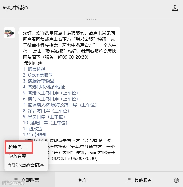 ①线上购票:点击关注公众号 → 点击左下角“立即购票” → 点击“跨境巴士” → 根据提示填写相关信息即可完成购票。