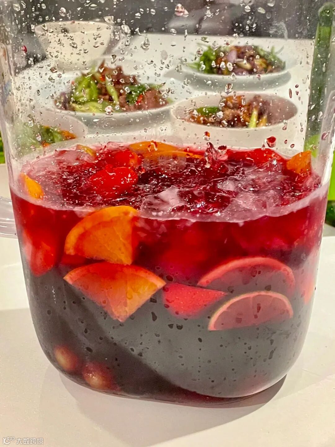 以红酒🍷为基底,加入各种水果和调料制成,颜色鲜艳,口感清甜爽口,果味浓郁,酒精度适中,不会让人轻易醉倒。