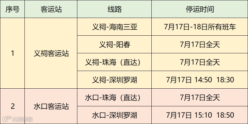 受台风“泰利”影响,为确保旅客出行安全,义祠公司对部分出行服务作临时调整,具体如下: