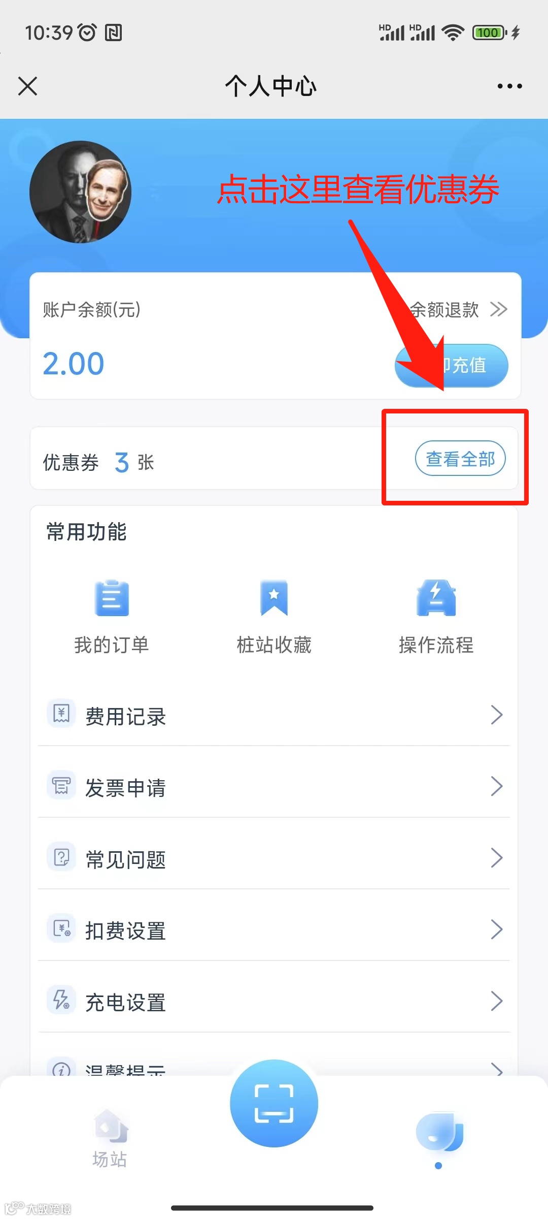 Step2:进入【首页】,点击【充电服务充电服务—账户充值—选择面额—选择优惠券-支付—完成充值】即可。