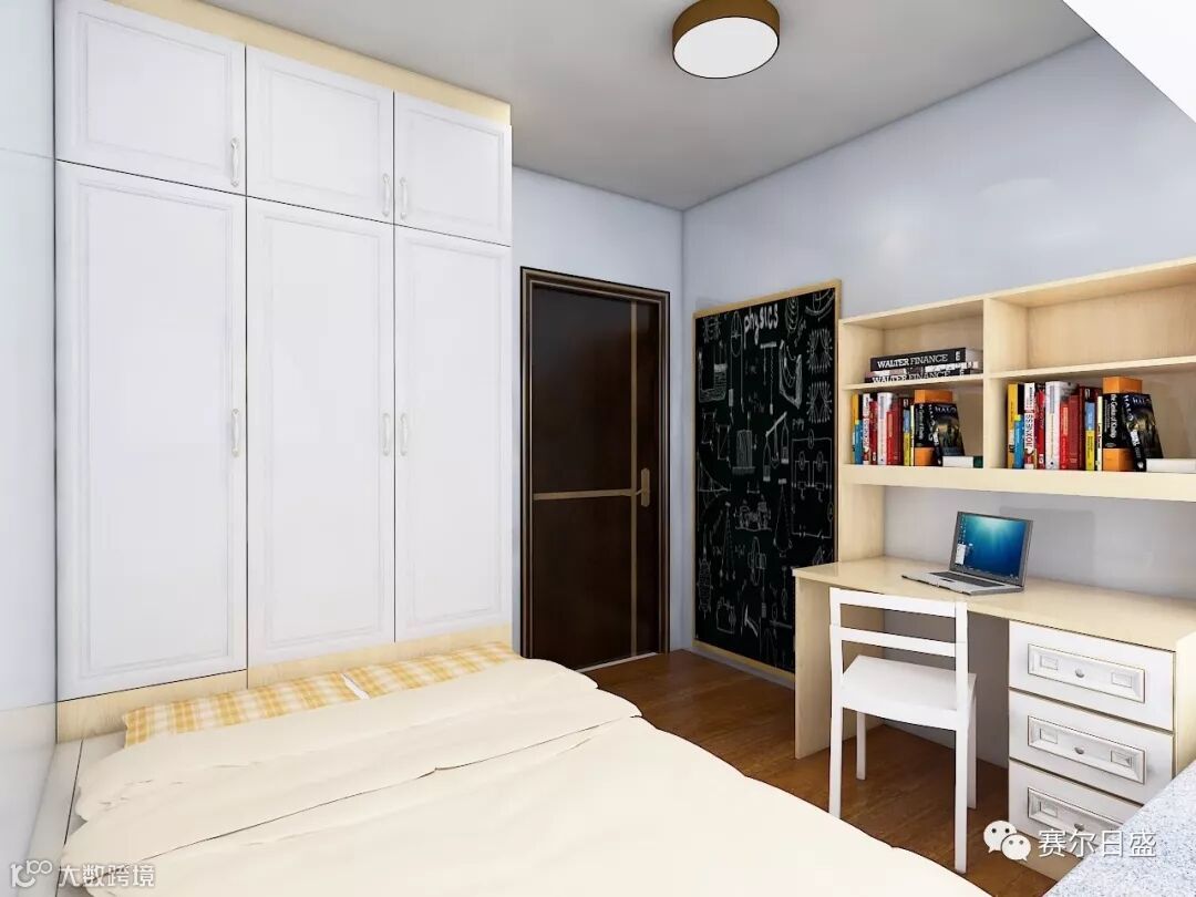 儿童房的面积相对有限,做一个组合型的榻榻米,一体化设计,节省很多空间。