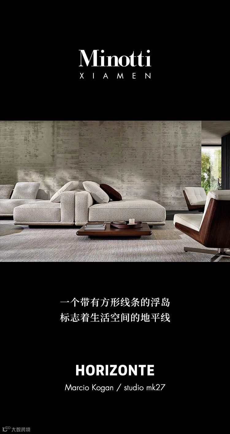Minotti 全新发布的2022客厅沙发系列,Horizonte 可谓是出尽风头,来自巴西的设计大师 Marcio Kogan 再次突破常规思路,全新模块化座椅系统采用悬挂式底座设计,宛如自然漂浮在生活大海的岛屿,悠然自得。
