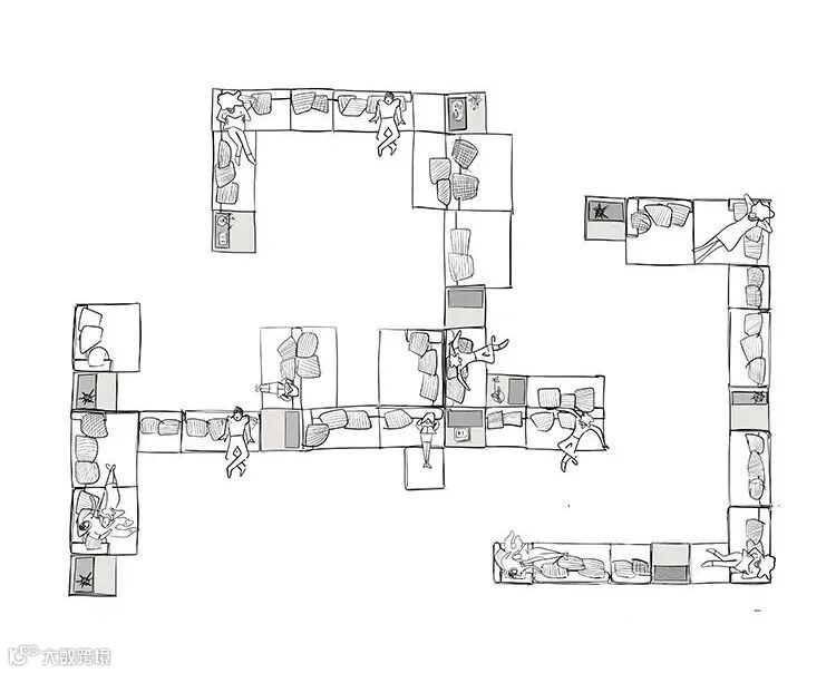 外观看似简单的 Horizonte,却能通过不同形式的精巧搭配,满足不同空间的样式代码。通过将模块、倾斜元素和内置咖啡桌的变换组合,创造出一个可持续、充满延展性的整体叙事空间,奇妙无穷。