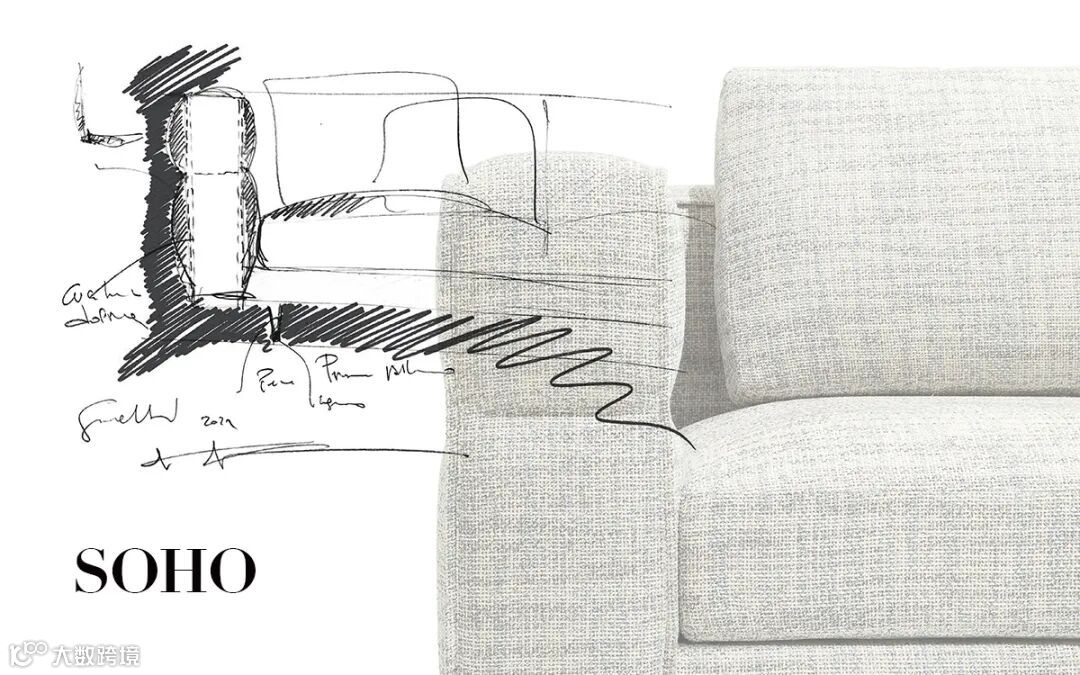 Carlo Colombo 主笔设计的两款单品 SOHO 和 VIBE 依然充满建筑思维。SOHO 是一款现代风格的沙发,轻盈的观感与细节的表达,看似平常却埋藏着独特的设计伏笔,跳出传统落地沙发的窠臼,用巧妙的支撑铸件营造悬空视觉。