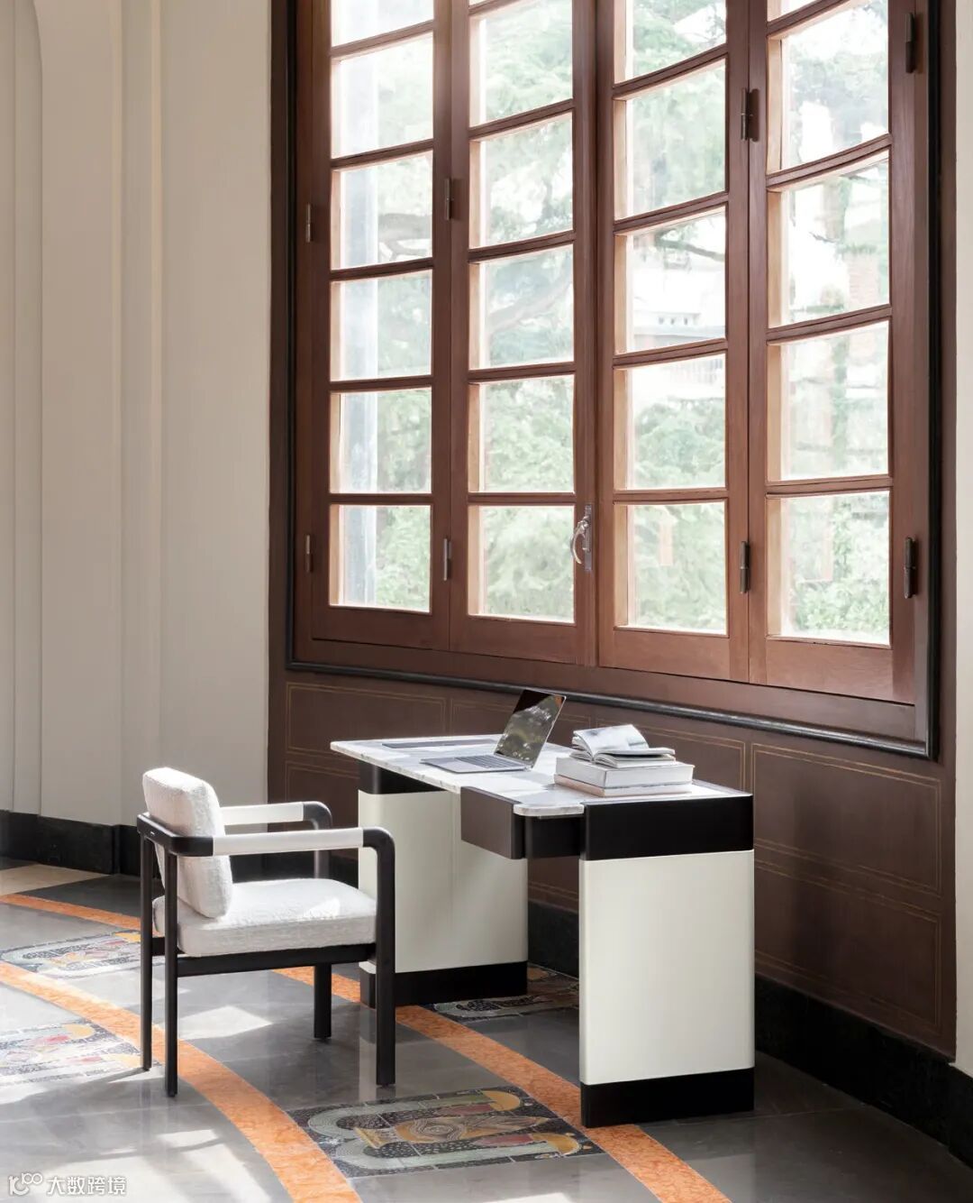 受古典主义的启发,Montgomery 单椅的特色系带堪称神来之笔,成为天然木材、定制面料以及设计手法的关联支点,纤细的木框架简洁明快,拥有丰富的美学细节,Giorgetti 独家开发的榫卯结构极具品牌基因,设计师 Dainelli Studio 以现代的艺术色彩与其交相辉映。Edward 书桌雏形来源于装饰主义后期的风格,精致的尺寸可以满足书房、卧室、走廊或者公共区间的陈列美感,随心所欲。