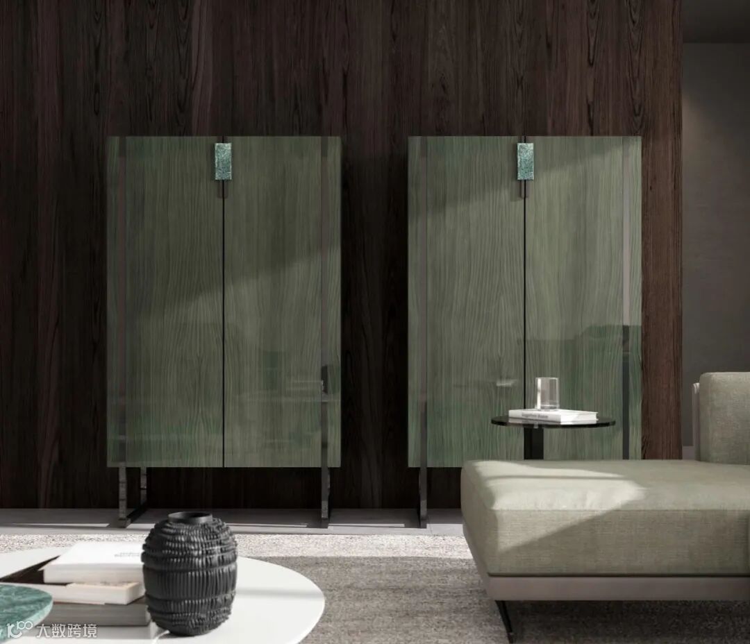 绿色成为了2022米兰家具展的“特别嘉宾”,每个品牌对于绿的表达各有千秋,MALERBA 也不例外,层次分明又奢华尊贵。用技高一筹的高光烤漆与天然木纹诠释的“深林绿”柜门饰面让人眼前一亮,清新脱俗,怡然自在。