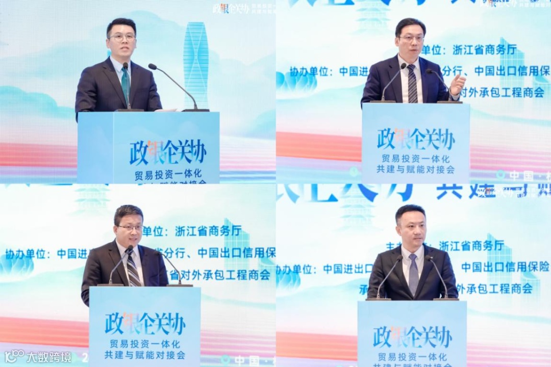 近日,为推动浙江外贸高质量发展,进出口银行浙江省分行联合中国出口信用保险公司浙江分公司共同协助浙江省商务厅举办“政银企关协”——贸易投资一体化共建与赋能对接会。中国进出口银行党委委员、副行长王康,中国出口信用保险公司党委委员、副总经理赵蓉,浙江省商务厅党组书记、厅长周向军等出席活动。浙江省商务厅党组成员、副厅长陈志成和中国进出口银行浙江省分行党委书记、行长彭豪主持活动。