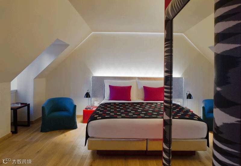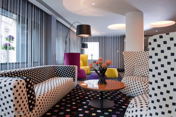 夸张大胆的色彩应用,醒目张扬的图案设计,充满前卫的现代艺术。Missoni 昔日服装的色彩激情汇融于此,也展现在这个位于苏格兰的宾馆室内设计和陈列上。