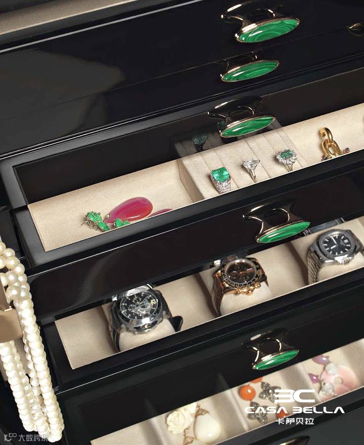 无论在您家中的哪个位置,在您需要的任何地方,都可以摆放一台漂亮的保险柜,收藏您的首饰、手表和文件。 独立的古典式保险柜或者一台现代式衣柜,里面装有一台或两台保险柜或者一台任意颜色的不锈钢铠装内置保险柜,藏在现有家具中内部搭配精确排列的抽屉,采用珍贵木材制作,可以盛放戒指、耳环、项链、手镯、手表等… Agresti一直是世界名门贵族珍藏挚爱的首选保险柜,因为它本身也是他们的挚爱。