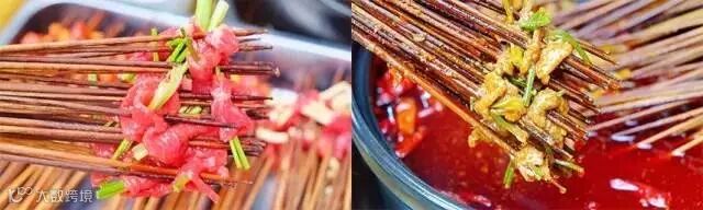 串串香,是四川地区汉族传统美食之一。由各种蔬菜、肉食用竹签串成一串串,放入特制配入的锅里加工煮熟即可食用。食用时,可按自己的喜好添加干碟,油碟等等。