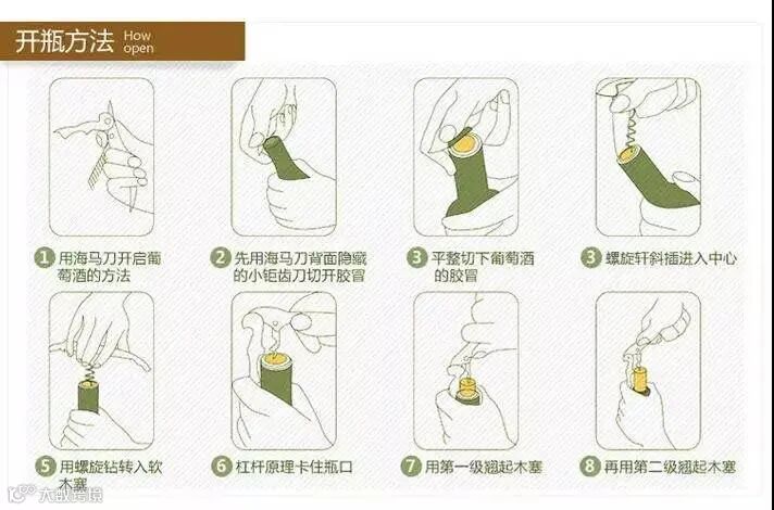 使用侍酒型开瓶器(2) 先用海马刀背面隐藏的小锯齿刀切开胶帽