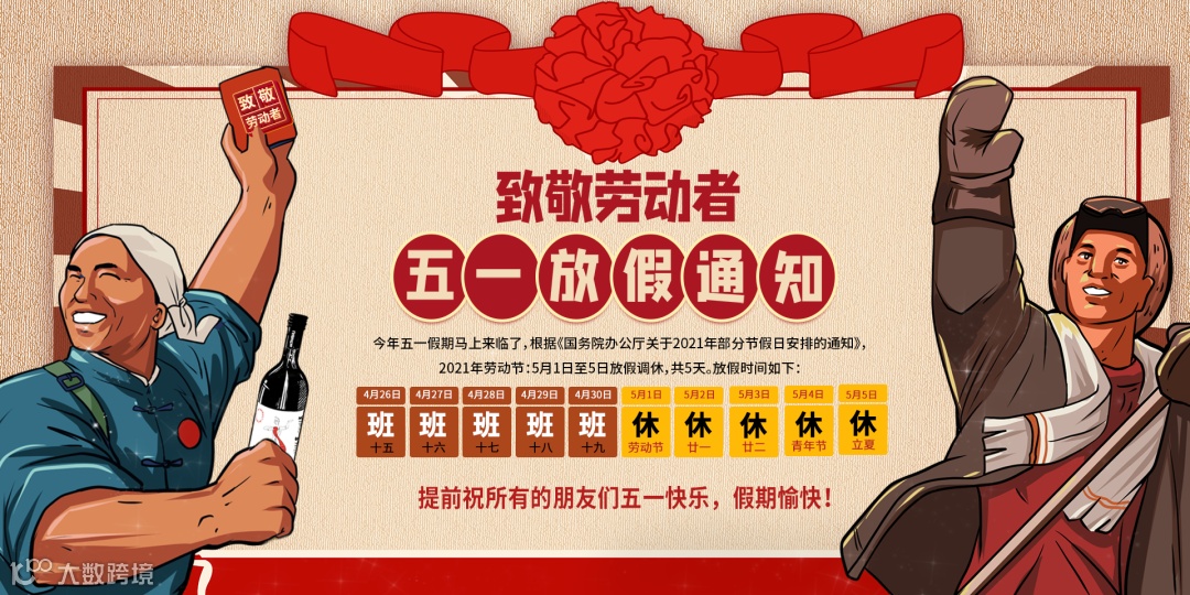 五一劳动节将至,根据国务院办公厅通知精神,现将2021年五一劳动节放假安排通知如下: