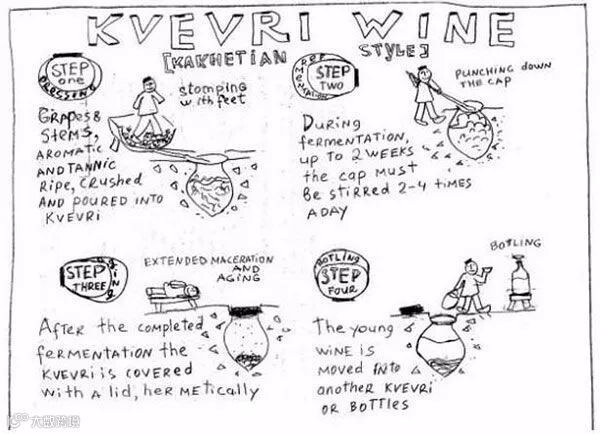 Qvevri酿造方法是葡萄酒酿造技术最早的实例之一,该方法的使用是葡萄酒酿造最早的起源。古代格鲁吉亚传统的Qvevri葡萄酒酿造方法被联合国教科文组织认定为非物质文化遗产。Qvevri葡萄酒酿造方法在格鲁吉亚农村和城市随处可见。酿制过程包括压榨葡萄以及把葡萄汁和葡萄果渣一起倒入Qvevri陶罐中,混合物占满容器大约80-85%的空间。随着发酵进行,将罐中混合物每天搅拌4-5次。当发酵结束后,用相同的葡萄混合物填充qvevri陶罐,并密封陈酿5-6个月。