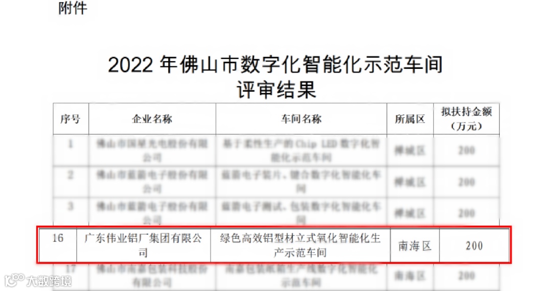 市工业和信息化局公示了2022年佛山市数字化智能化示范车间评审结果,广东伟业集团