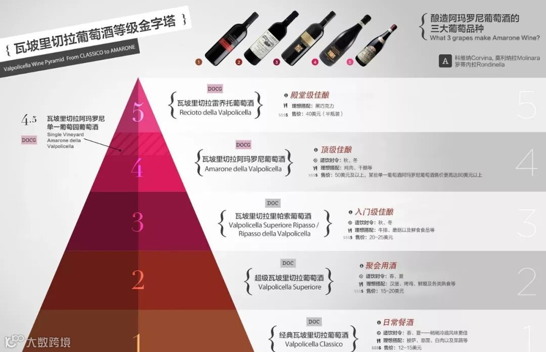 1、酿造同样多的葡萄酒,阿玛罗尼所需要的葡萄是酿造普通葡萄酒的2倍多;