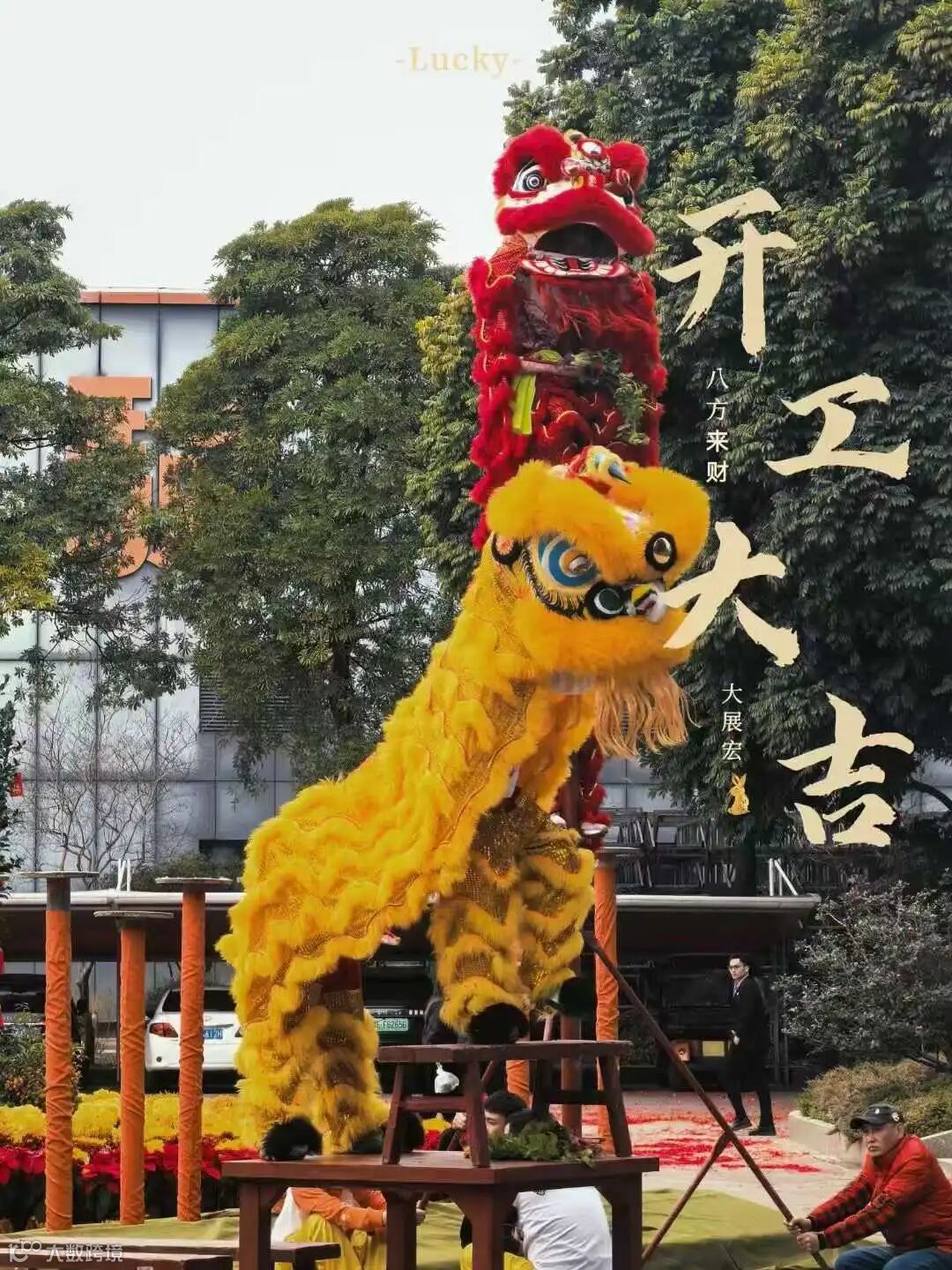 在爆竹声声、锣鼓喧天中,霸气威武的醒狮迎高而上,翻腾跳跃,道喜采青、威风凛凛,舞出伟业人奋发向上、无往不胜的精气神,跃出伟业人勇毅前行开新篇的干劲。