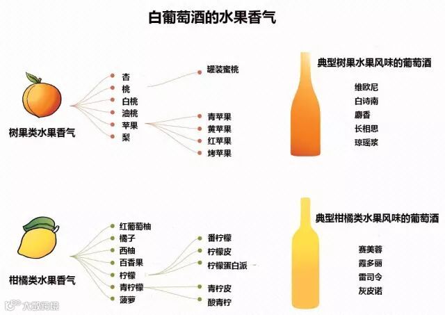 白葡萄酒的风味主要分为树果类水果风味和柑橘类水果风味两类。