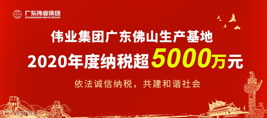 伟业集团广东佛山生产基地从2005年纳税超1000万,到2020年度超5000万纳税额,集团正一步步发展壮大。