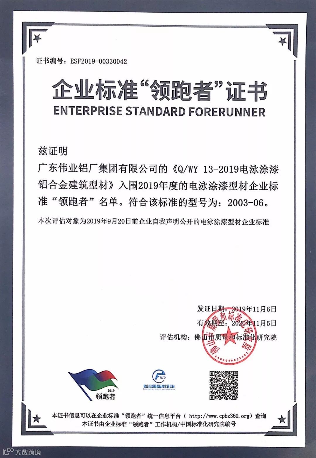 领跑高质量发展|广东伟业集团入选2019企业标准“领跑者”