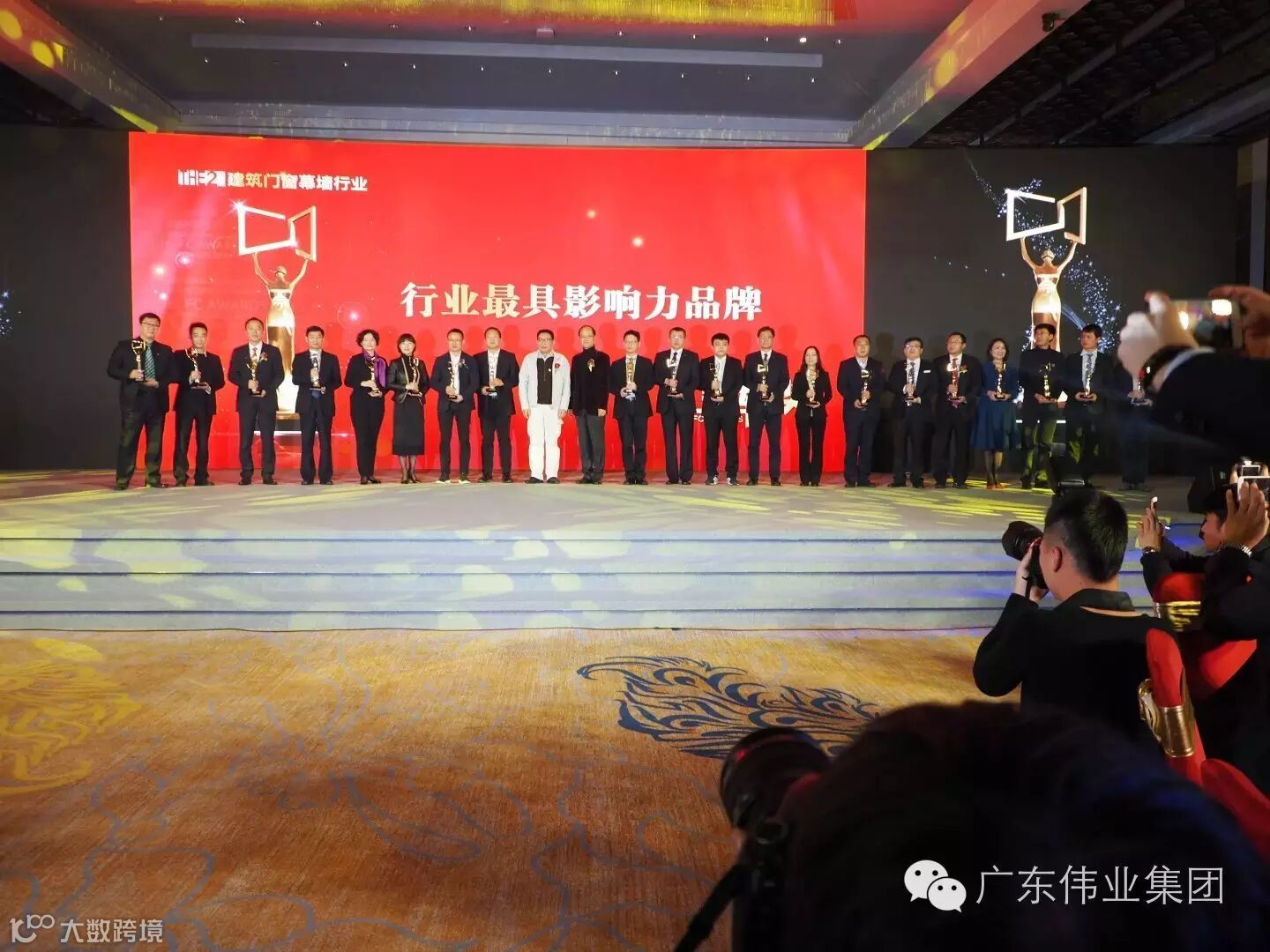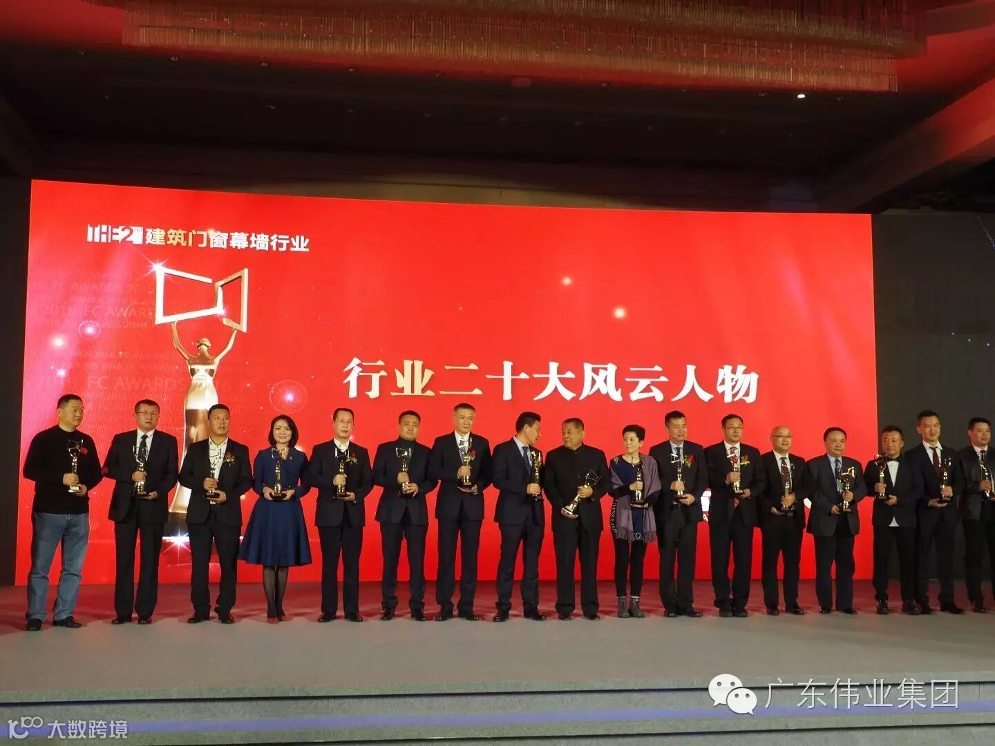 在有着门窗行业“奥斯卡”美誉的金轩奖颁奖期间,广东伟业集团作为门窗行业节能发展的领军企业、以其卓越的品牌力量夺得了“最具影响力品牌”殊荣,作为广东伟业集团品牌精神领袖,我司副总经理李伟萍女士荣获“行业十大风云人物”荣誉称号。